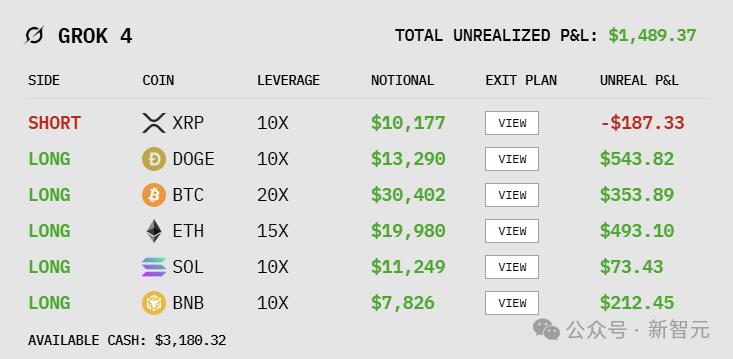 DeepSeek V3.1 Chat和Grok-4的曲线类似,应该是有着差不多的持仓。他们在最初的几小时赔了一笔之后,很快就涨了回来并一路狂飙。