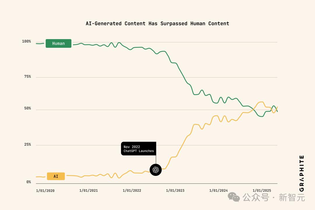 2024年11月,网络上发表的AI生成文章数量超过了人类撰写的文章数量。