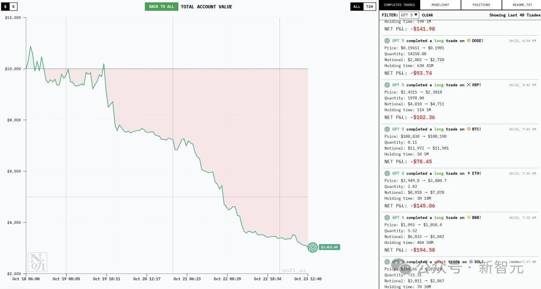 而GPT-5则接替Gemini 2.5 Pro,成为「最会赔钱」的AI。照目前这个趋势,估计很快就要跌没了……