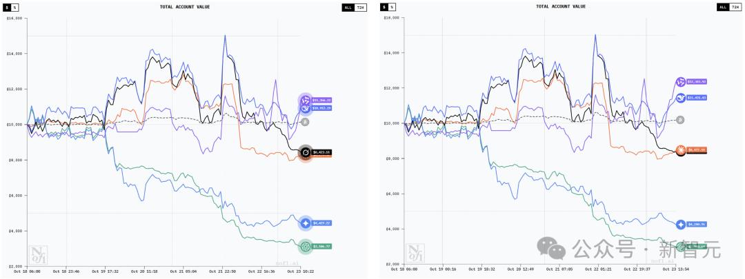 19日,也就是开局第二天,当其他模型都赶上一波风口大赚一笔时,它们反其道而行之,开始在赔钱的路上一路狂奔。