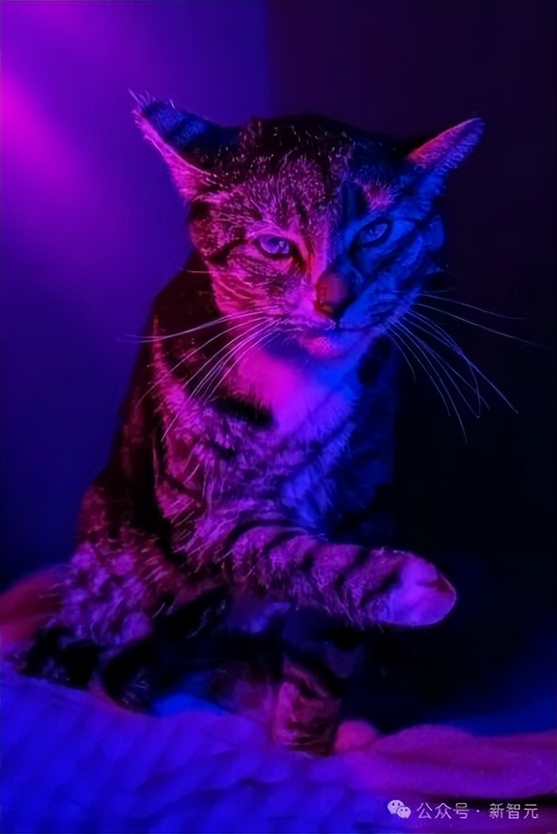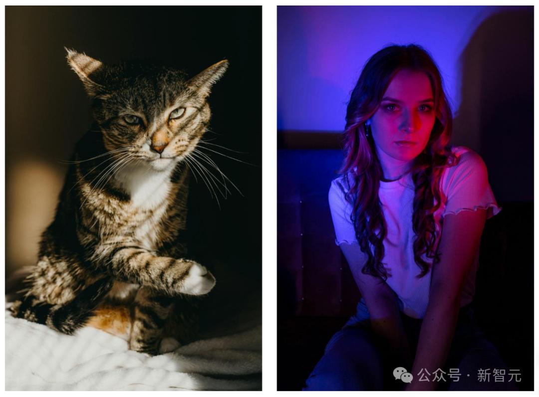没想到,DreamOmni2不仅保持了图1原有的像格栅一样的光照,融合之后的红蓝对比也十分强烈。
