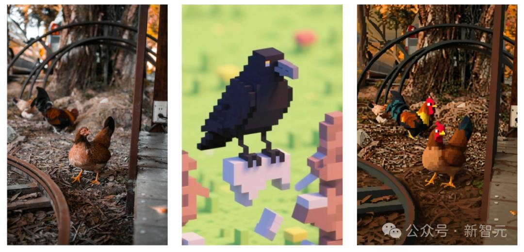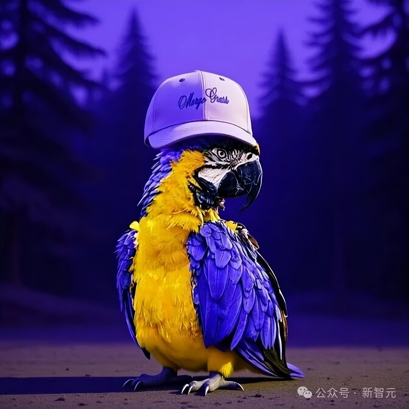 比如,让图1的鹦鹉戴上图2的帽子,模仿图3中的氛围与色调。