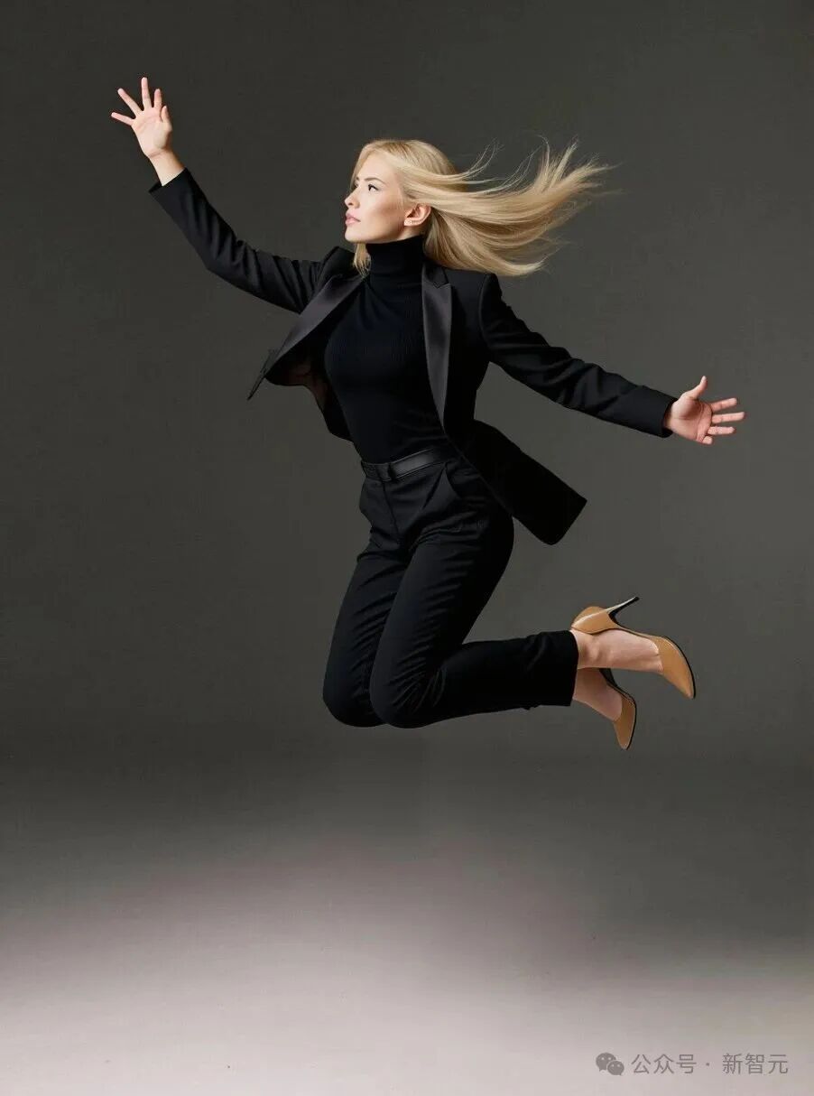 在DreamOmni2生成的结果中,胳膊和腿的动作基本完美复刻了图2。