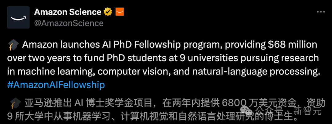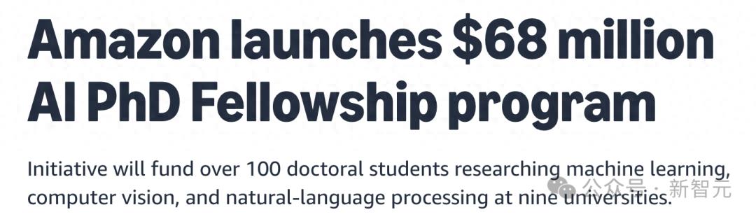 可以说,这是亚马逊首次发布的巨额AI博士奖学金计划,总金额6800万美元
