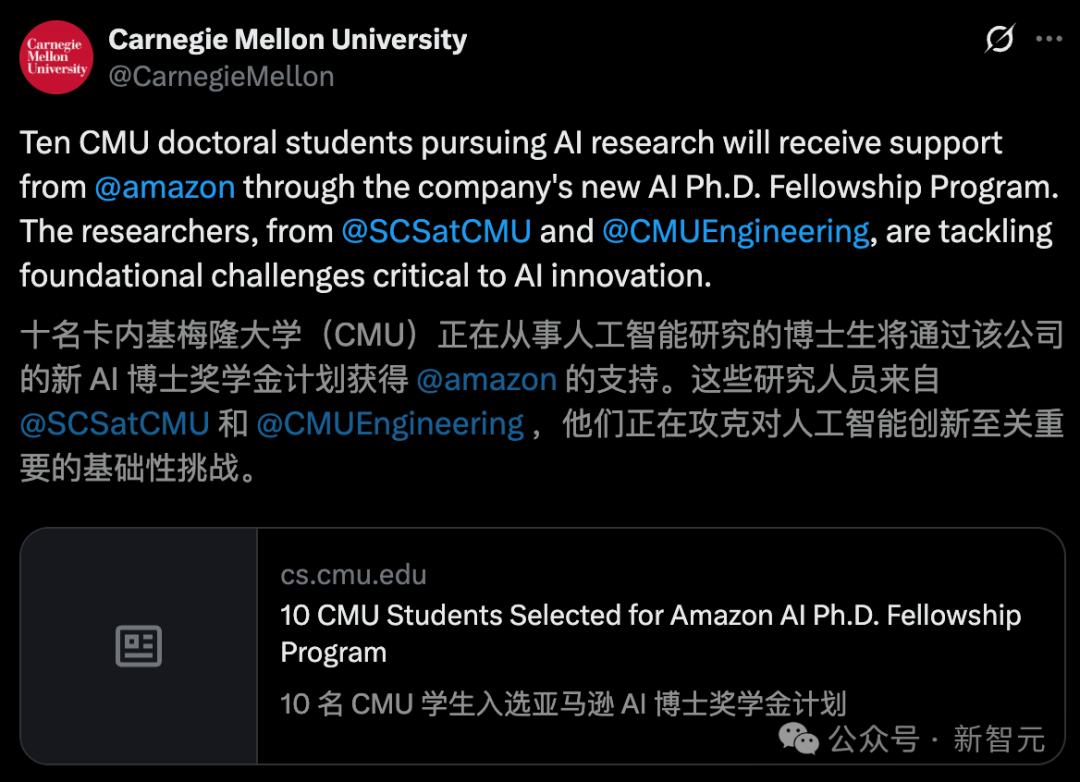 【新智元导读】亚马逊AI博士奖学金官宣了!全球九所顶尖AI学府,两年共6800万美金。目前,MIT、CMU、UC伯克利纷纷公开博士生获奖名单,多位华人学者榜上有名。