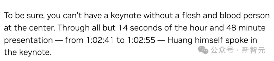 全场1小时48分钟的演讲,只有在1:02:41-1:02:55这14秒钟,是数字版老黄。