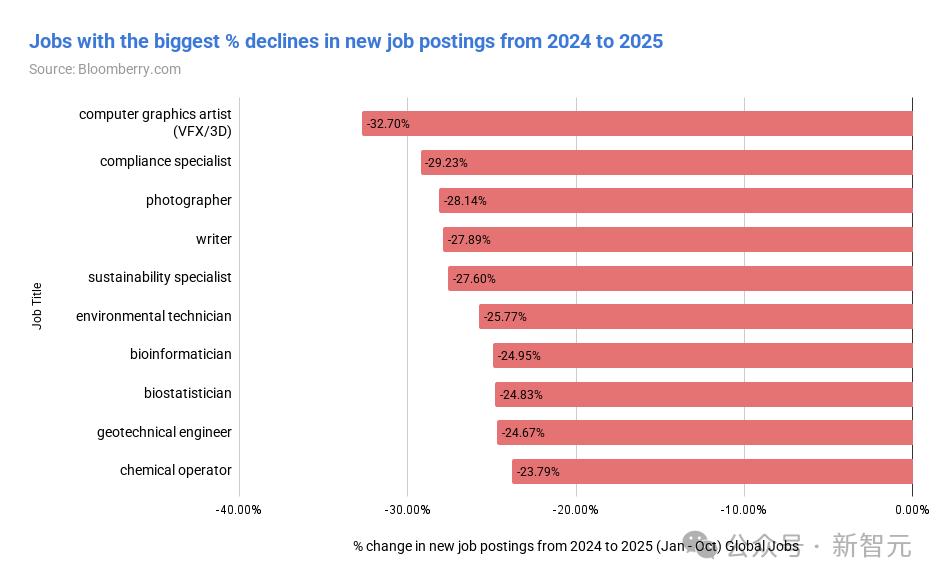 如果说有一个岗位被普遍认为将被AI淘汰,那就是客户服务代表——需求仅下降了4.0%。