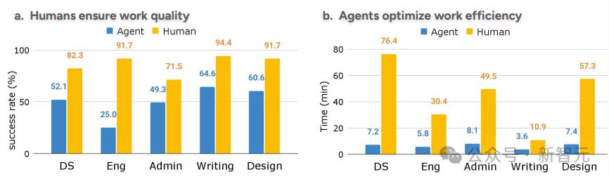 结果显示:在这种「接力式协作」下,任务总耗时减少58%,而输出质量几乎与纯人类完成的版本一致。